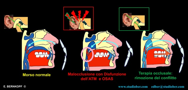 La malocclusione dento-scheletrica, con la retrusione della mandibola e quindi della lingua, può favorire l’OSAS, ma può anche favorire la Disfunzione dell’Articolazione Temporo Mandibolare, a sua volta frequente causa di cefalea. Anche la cefalea è stata individuata come possibile elemento patogenetico dell’Insufficienza Erettile (5,6), per cui il trattamento con dispositivi intraorali in grado di agire sia sulla cefalea che sull’OSAS possono avere un duplice ruolo terapeutico.