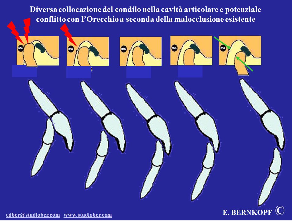 Il traumatismo cronico da parte di un’Articolazione Temporo Mandibolare (ATM) che presenti il condilo mandibolare retruso per una malocclusione dentaria e la sua azione perversa sulla dinamica tubarica e del Condotto Uditivo Esterno (CUE) possono costituire il presupposto strutturale sia di un’eccessiva secrezione ceruminosa (che patologia non e’ ancora, ma può esserne segno di allarme), sia di una superinfezione di un orecchio strutturalmente predisposto.