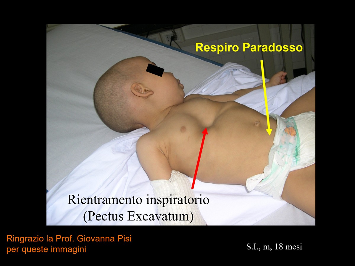 Fig.1 Respiro paradosso. Si noti il rientramento sternale in fase inspiratoria, che può contribuire all’insorgenza del Pectus Excavatum.